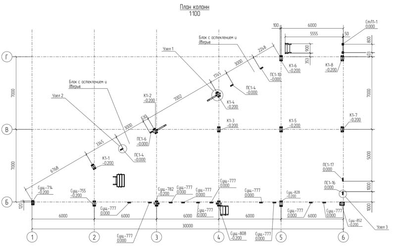 Площадка расчитана на 2000кг/м2. По оси Б будет пристройка АБК, поэтому там нет цоколя. |