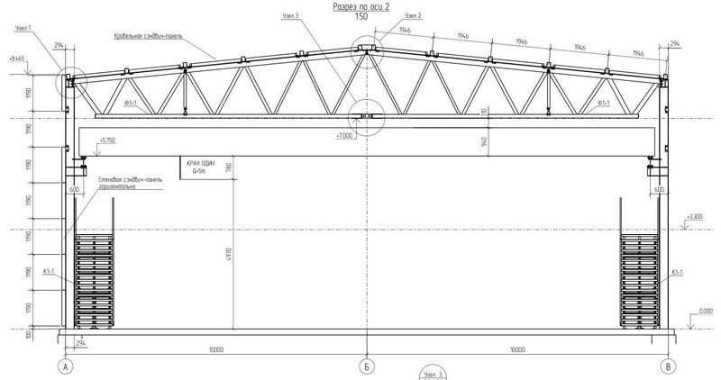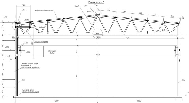 Стены и кровля - сэндвич-панели (возможна "плоская кровля" или сборный сэндвич) или профлист (для холодного здания не учтен расход металла на прогоны по стене).