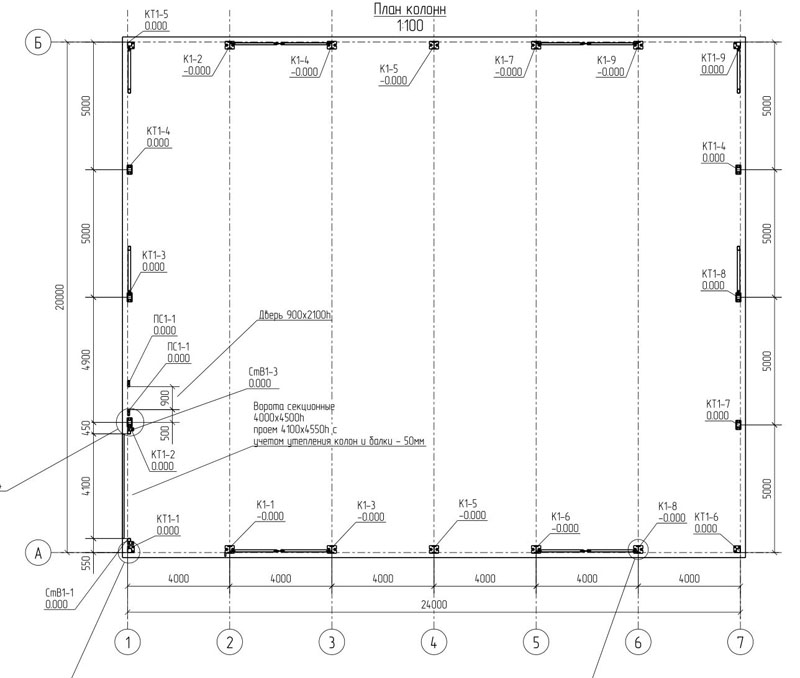 Шаг колонн - 4 метра (новая версия 2021 года). Шаг колонн торца - 3-6м.