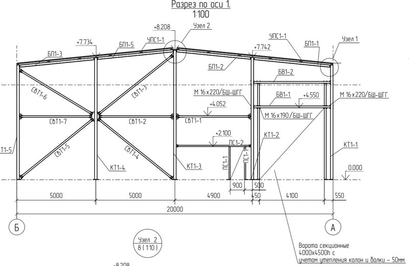 Стены и кровля - сэндвич-панели (возможна "плоская кровля" или сборный сэндвич) или профлист (для холодного здания не учтен расход металла на прогоны по стене).