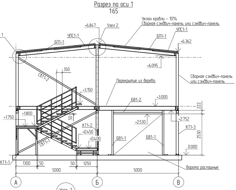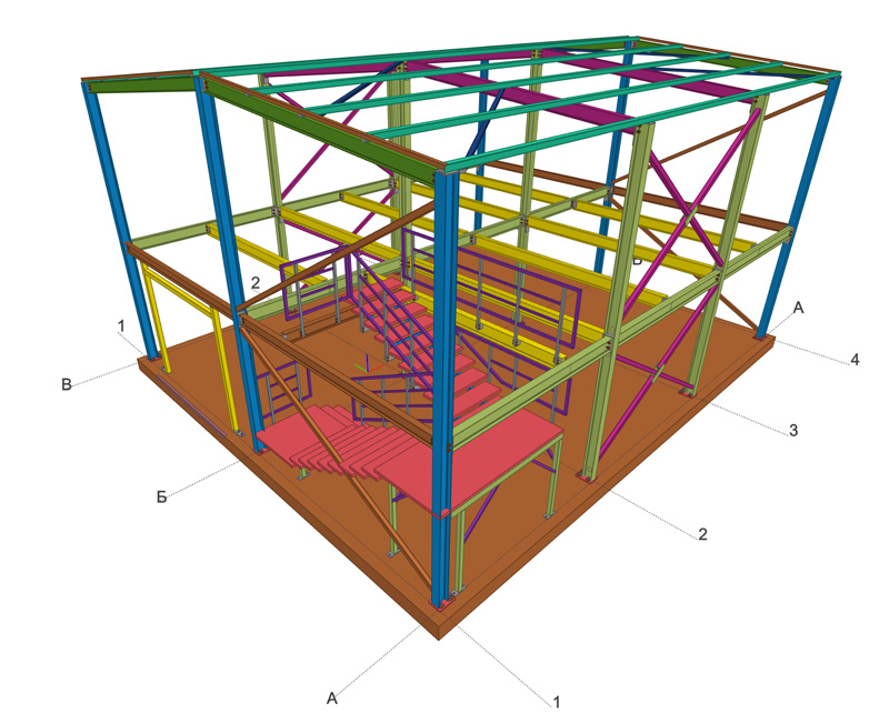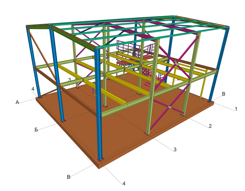 Рассчитан под изготовление на месте - всё на болтах, кроме прогонов и связей.