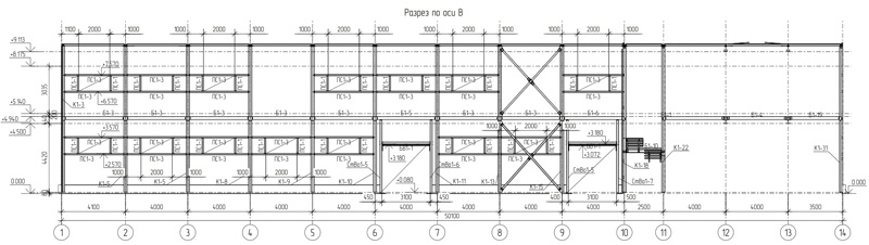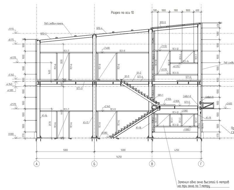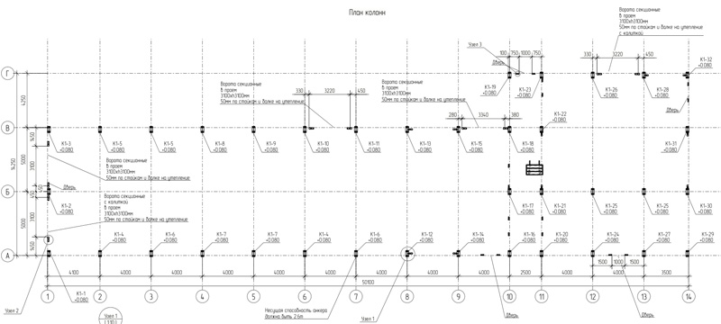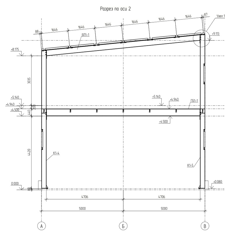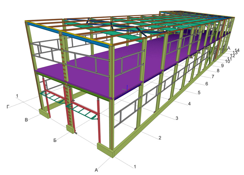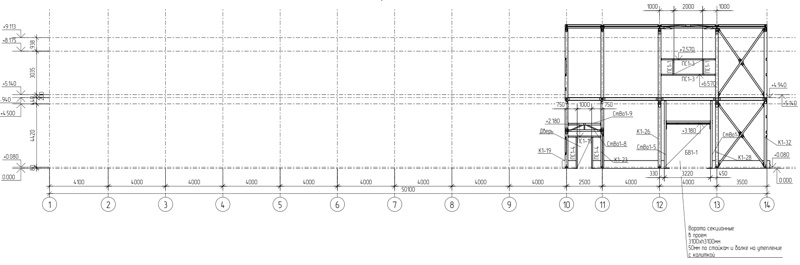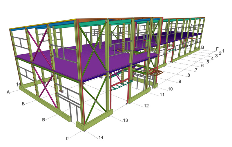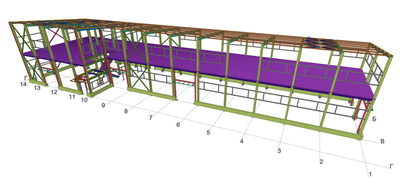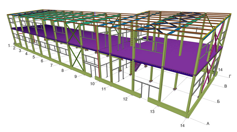 Общая площадь - 1115 м2 Металлоемкость каркаса – 60311 кг, 54,1 кг/м2. Кровля и стены -сэндвич Фундамент -существующая плита
