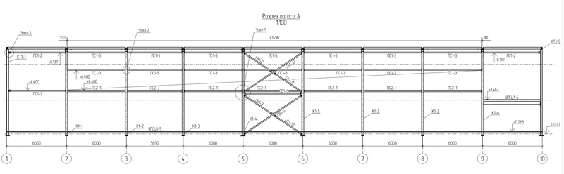 Металлоемкость каркаса –8945кг, 57,16 кг/м2.