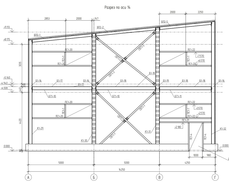 Общая площадь - 1115 м2 Металлоемкость каркаса – 60311 кг, 54,1 кг/м2. Кровля и стены -сэндвич Фундамент -существующая плита