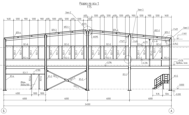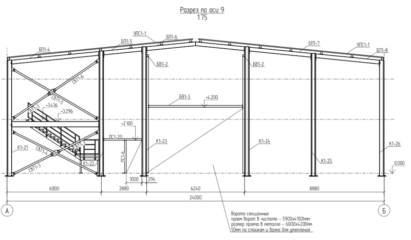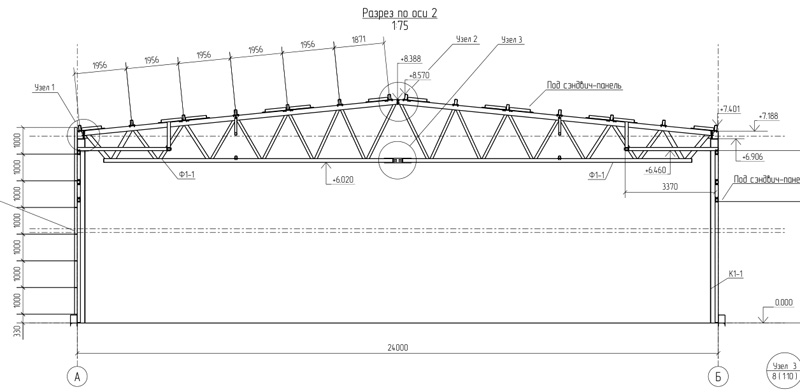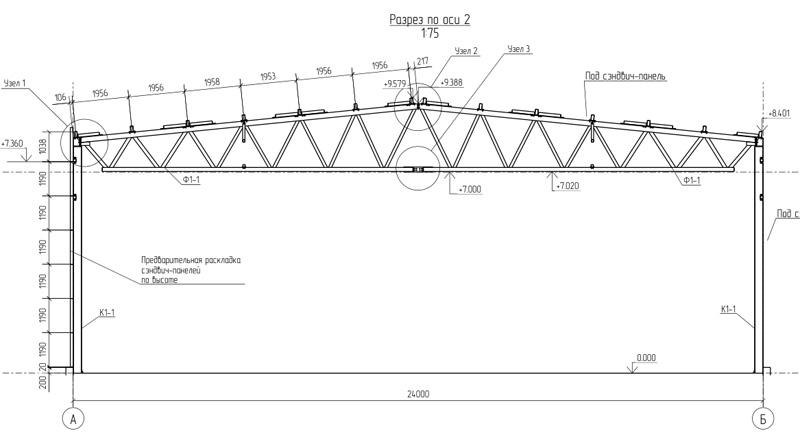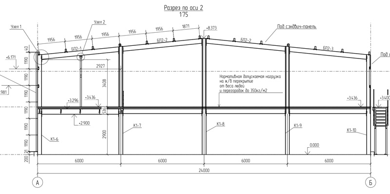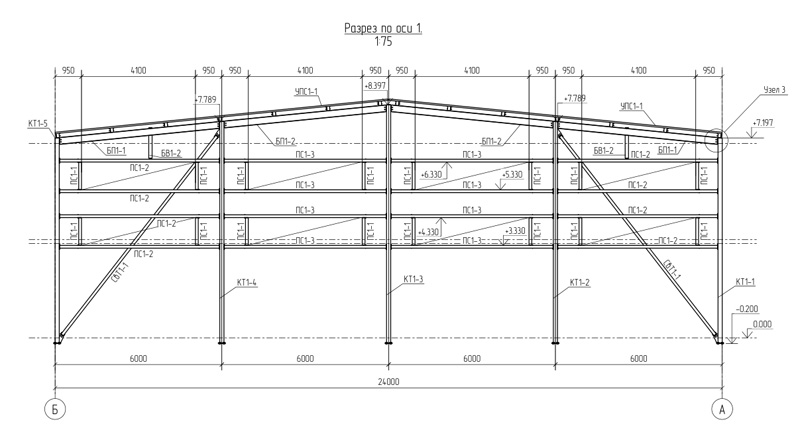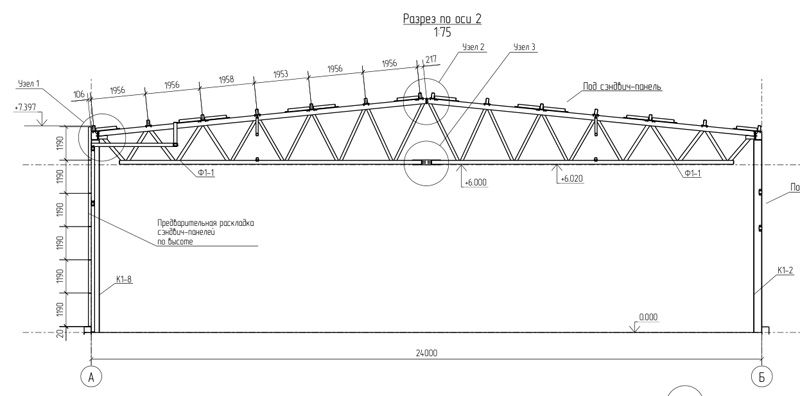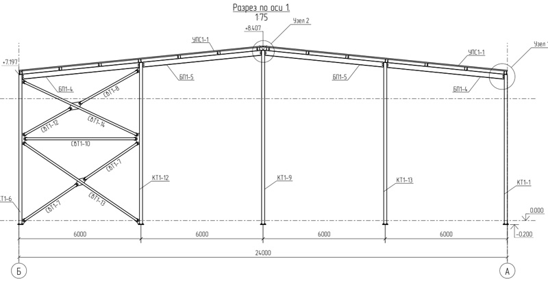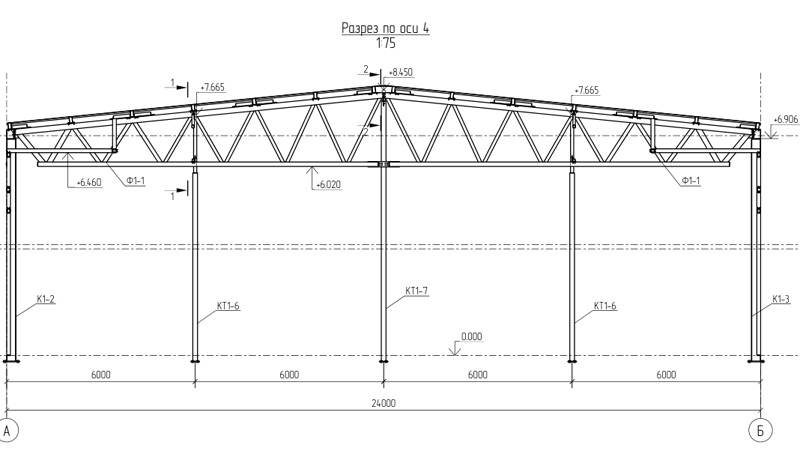 Типовой проект 24м, высота до 7 метров (Готовый проект КМ, КМД, КЖ)