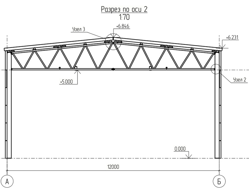 Рассчитан под кровлю и стены из сэндвич-панелей или профлиста (в цене не учтен профиль для профлиста - +от 250т. рублей).